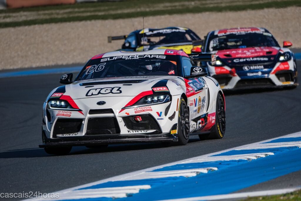 Hendrik Still, ao volante do Porsche Cayman CS RS da Veloso Motorsport, arrancou decidido da pole-position e assumiu o comando inicial, seguido de perto por Francisco Mora, no Toyota GR Supra GT4 EVO2 da Toyota Gazoo Racing Caetano Portugal.