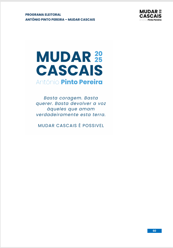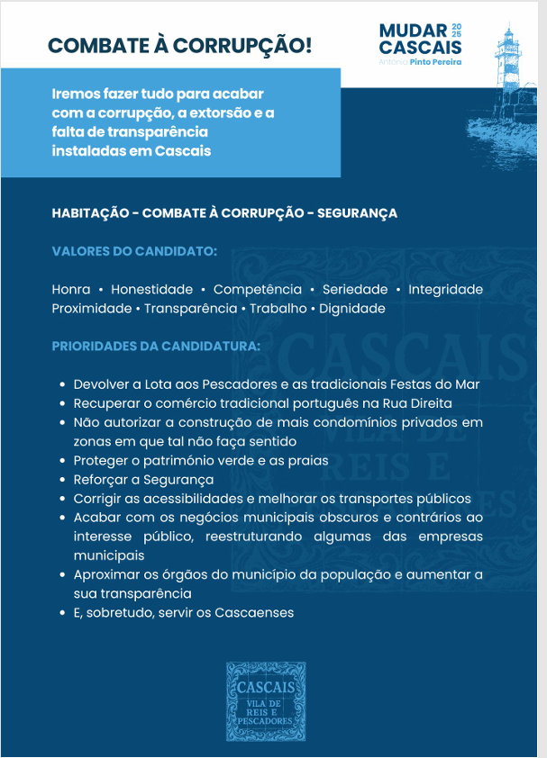 - ESTE É UM ESPAÇO OFERECIDO POR CASCAIS24HORAS A TODOS OS CANDIDATOS ÀS ELEIÇÕES DO DIA 12 DE OUTUBRO DE 2025, COM A PUBLICAÇÃO NA INTEGRA DOS SEUS PROGRAMAS PARA GOVERNAR O CONCELHO DE CASCAIS NOS PRÓXIMOS QUATRO ANOS.