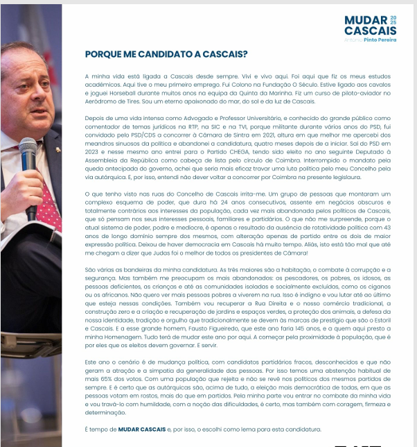 ANTÓNIO PINTO PEREIRA. MUDAR CASCAIS