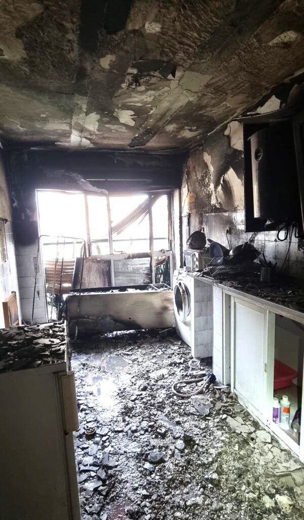 O incêndio ficou confinado à cozinha, que ficou completamente destruída, para além do denso fumo quer atingiu as outras divisões da casa.