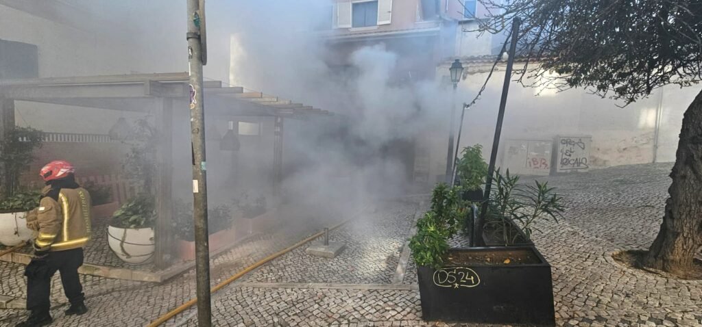 O alerta foi dado pouco antes das dez horas da manhã para um incêndio no restaurante, que ainda estaria encerrado, na rua Nova da Alfarrobeira.