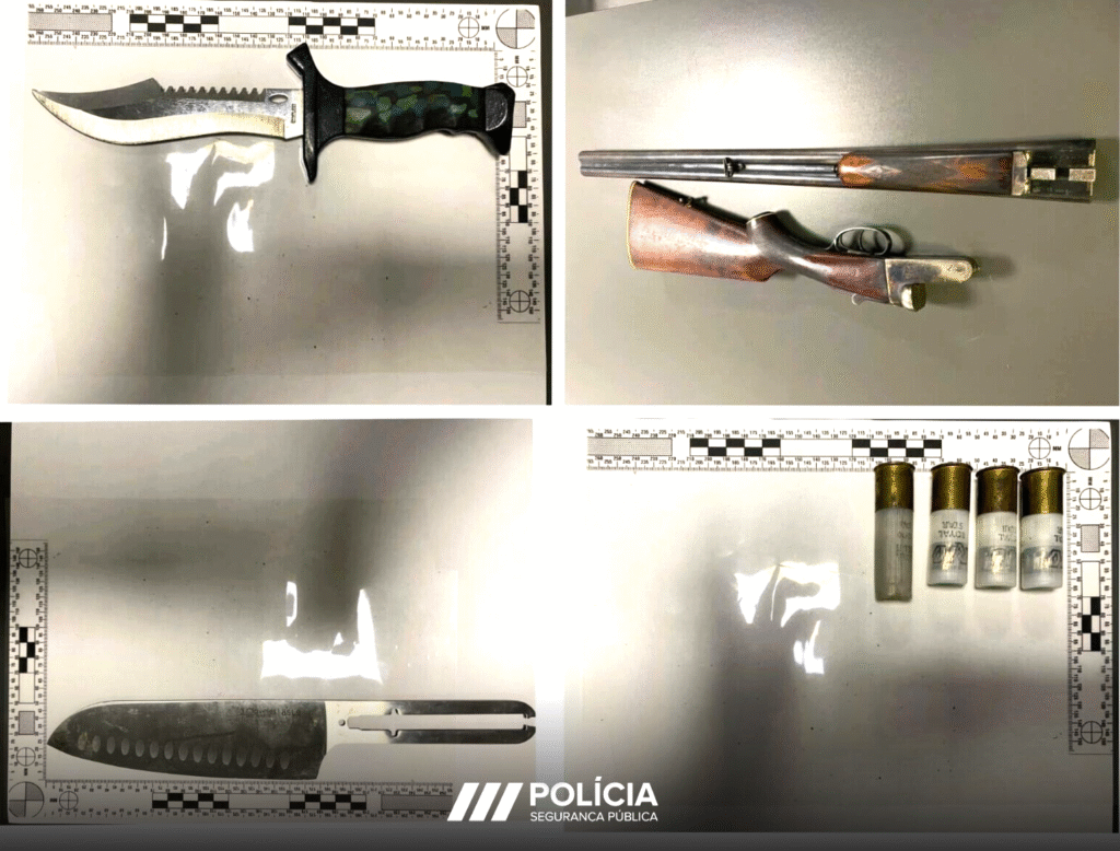 O suspeito era ainda visado em outro inquérito de ameaça agravada pela utilização e disparo de arma de fogo e ameaça com arma branca, sendo que no decorrer da busca realizada, os investigadores criminais da PSP confiscaram uma espingarda de calibre 12mm, quatro cartuchos de 12mm, um deles deflagrado, um punhal e uma faca de cozinha de grandes dimensões, provavelmente utilizadas aquando das ameaças por si proferidas.