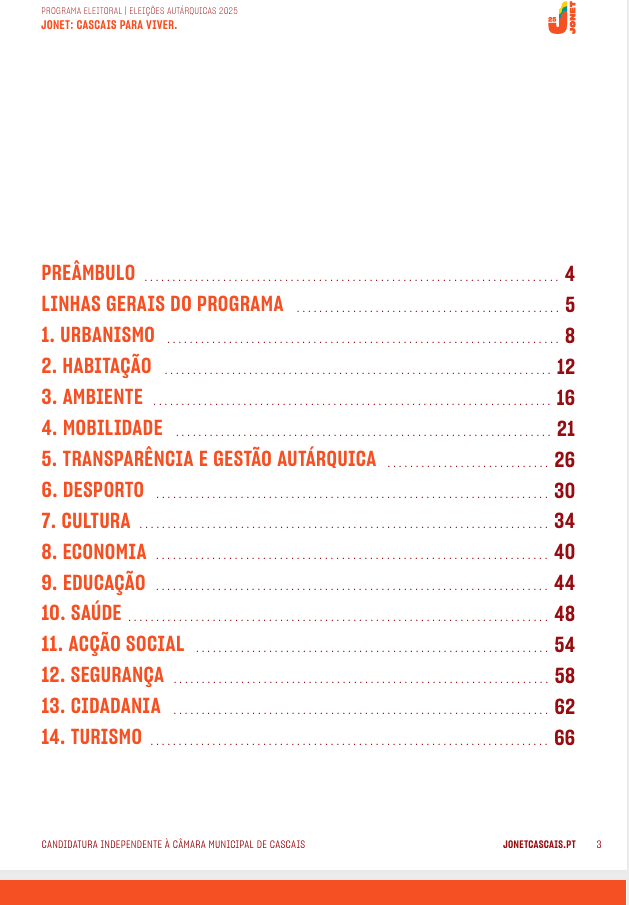 Este programa apresenta as medidas da candidatura independente “Jonet – Cascais para