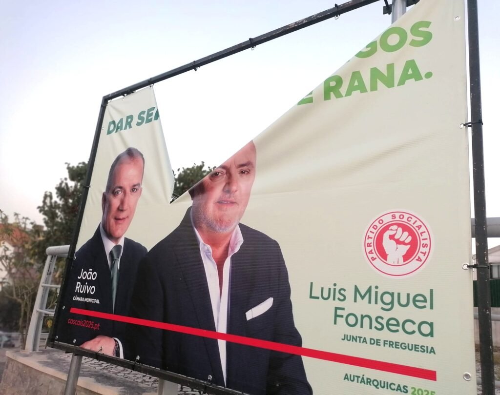 O outdoor no qual estão João Ruivo, candidato à presidência da Câmara de Cascais, e Luís Miguel Fonseca, candidato à Junta de Freguesia de São Domingos de Rana, foi rasgado por desconhecidos.